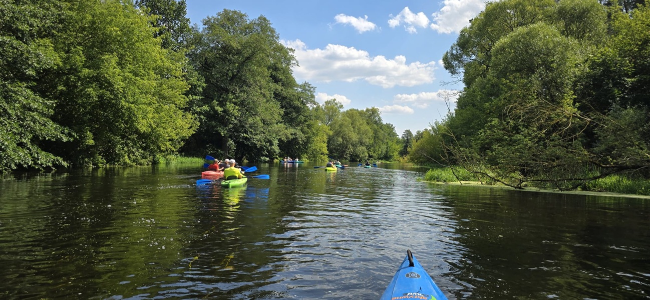 W sobotę, 9 sierpnia 2025 roku, odbył się nasz długo wyczekiwany, letni spływ kajakowy rzeką Wkrą na trasie Bolęcin – Joniec. Pogoda dopisała – błękitne niebo, słońce i lekki wiatr stworzyły idealne warunki do aktywnego wypoczynku.